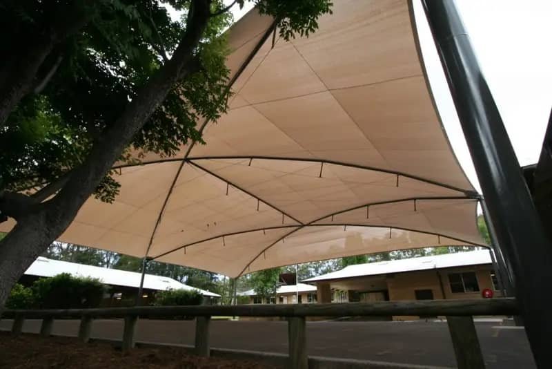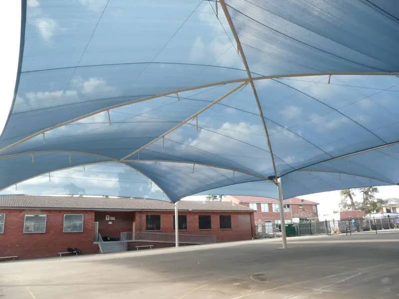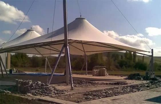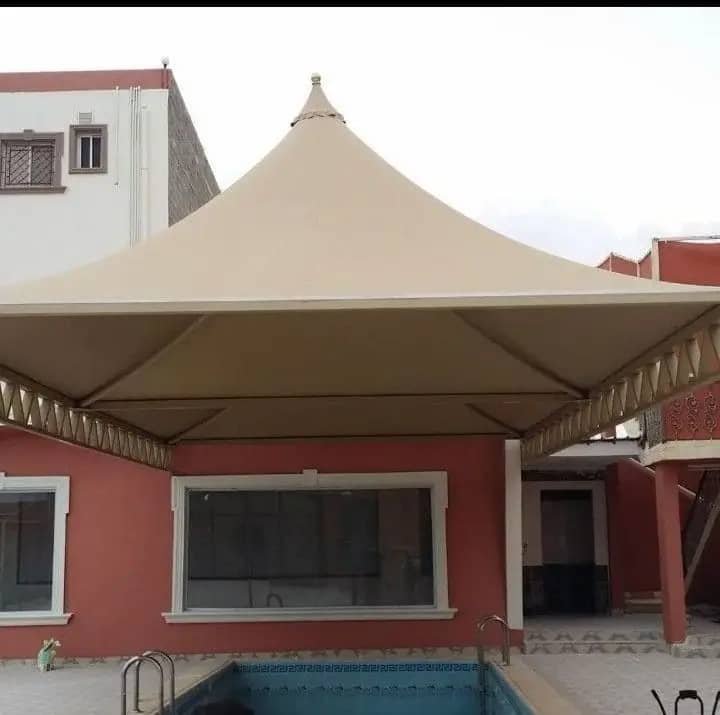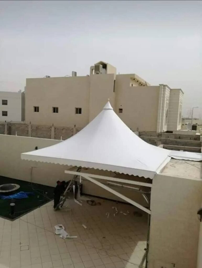 مظلات الشد تتميز بتصميمها الديناميكي وشكلها الفريد. تُصنع من مواد مثل الأقمشة المشدودة أو الأغطية البلاستيكية المدعمة. تتميز هذه المظلات بقدرتها على تغطية مساحات كبيرة دون الحاجة إلى الكثير من الأعمدة أو الدعم الهيكلي. تستخدم بشكل واسع في المساحات العامة مثل الملاعب، والأسواق المفتوحة، والمواقف العامة.