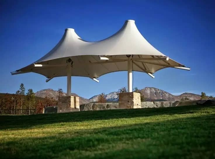 تصنع مظلات الشد الإنشائي عادةً من أقمشة تقنية عالية الجودة مثل: